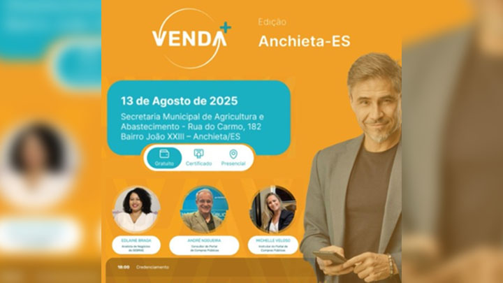 A Prefeitura de Anchieta, por meio da Secretaria Municipal de Agricultura e Abastecimento, vai promover no próximo dia 13 de agosto o evento VENDA+, com o objetivo de orientar empresários e empreendedores locais sobre como vender produtos e serviços para o poder público. A iniciativa é gratuita, presencial e oferece certificado aos participantes. O encontro […]