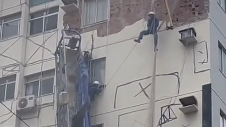 Andaime tomba e trabalhadores ficam pendurados em prédio de Jardim Camburi