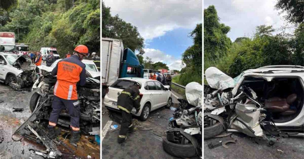 Acidente envolvendo três veículos deixa ferido na BR-262, em Viana
